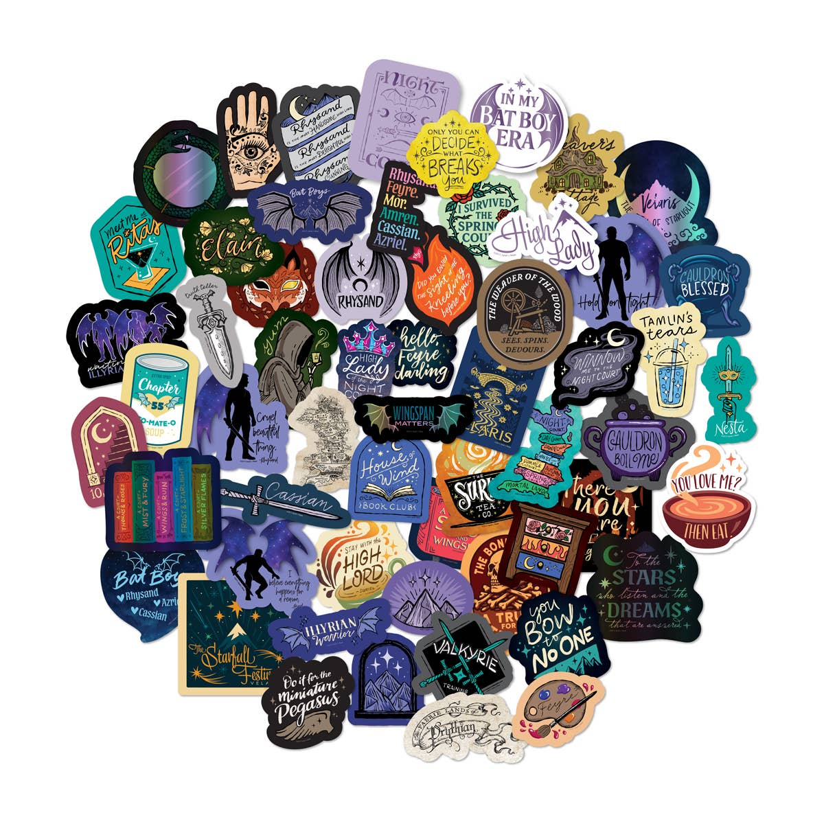 Bring the heat of the Night Court everywhere you go with this set of 60 Officially Licensed A Court of Thorns and Roses decals, including 5 holographic and 5 foil designs. From "To the stars who listen..." to "Hello, Feyre darling" and The Bat Boys, these stickers serve up the quotes that broke us, healed us, and made us blush.