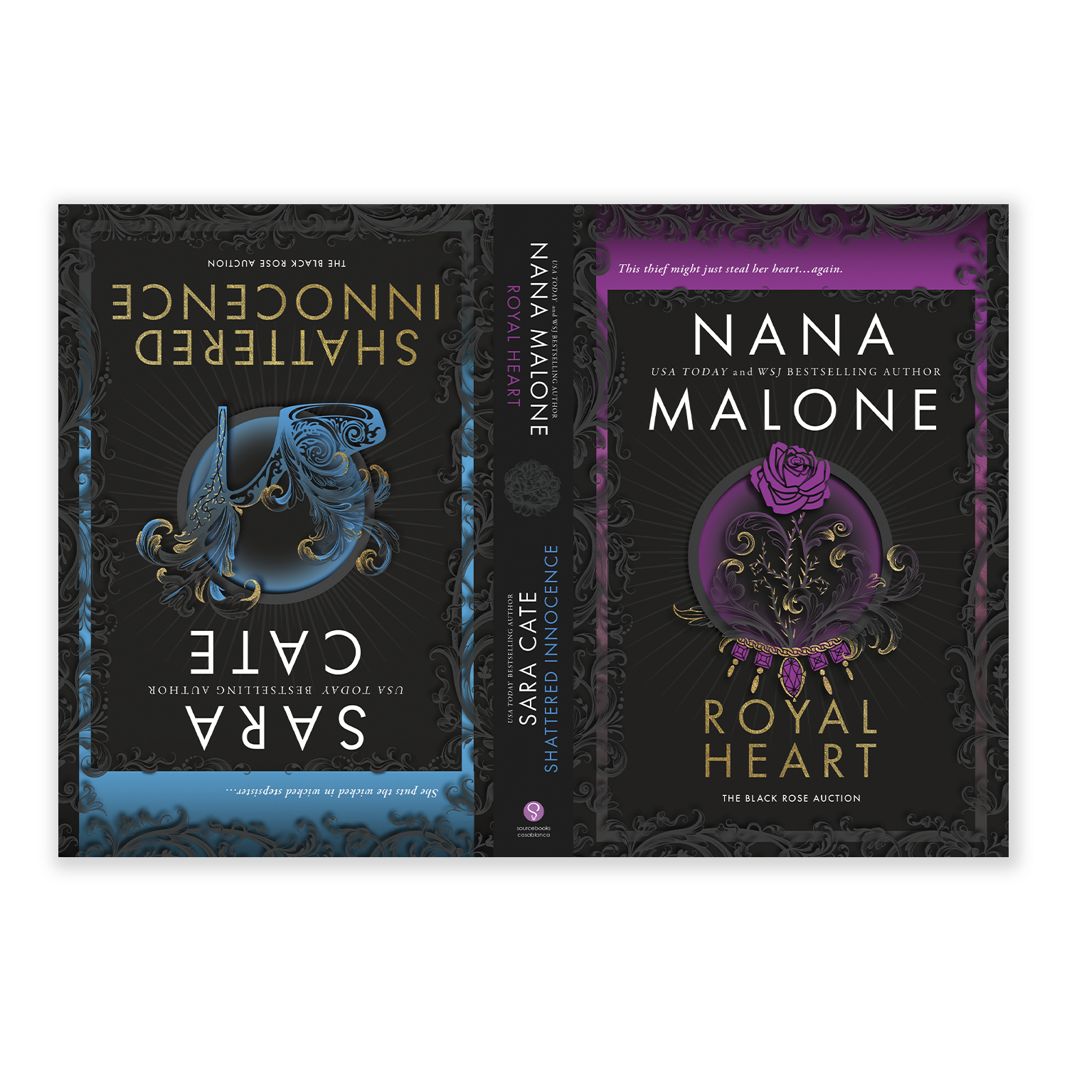 Welcome to the Black Rose Auction, where every sin can be yours for a price. For three days, the doors to this luxe New York estate are thrown wide for anyone with a taste for the obscenely rich, the ultra-exclusive, and the once in a lifetime thrill of the forbidden: where nothing is off the table and everything—and everyone—can be had for the taking. In SHATTERED INNOCENCE by Sara Cate, a Cinderella remix, a woman is being auctioned off to marry the highest bidder, even though the only person she wants is her stepsister. Desperate, the two hatch a plan to have an old flame bid on her behalf...only for him to decide he's playing for keeps and wants them both. In ROYAL HEART by Nana Malone, a Beauty and the Beast remix, a woman must work with the thief she blames for her father's death to steal back a priceless royal necklace. But the dark depth of the auction is no place for unwary hearts, and soon she may be the one stolen after all… And that’s just the beginning. Accept your invitation