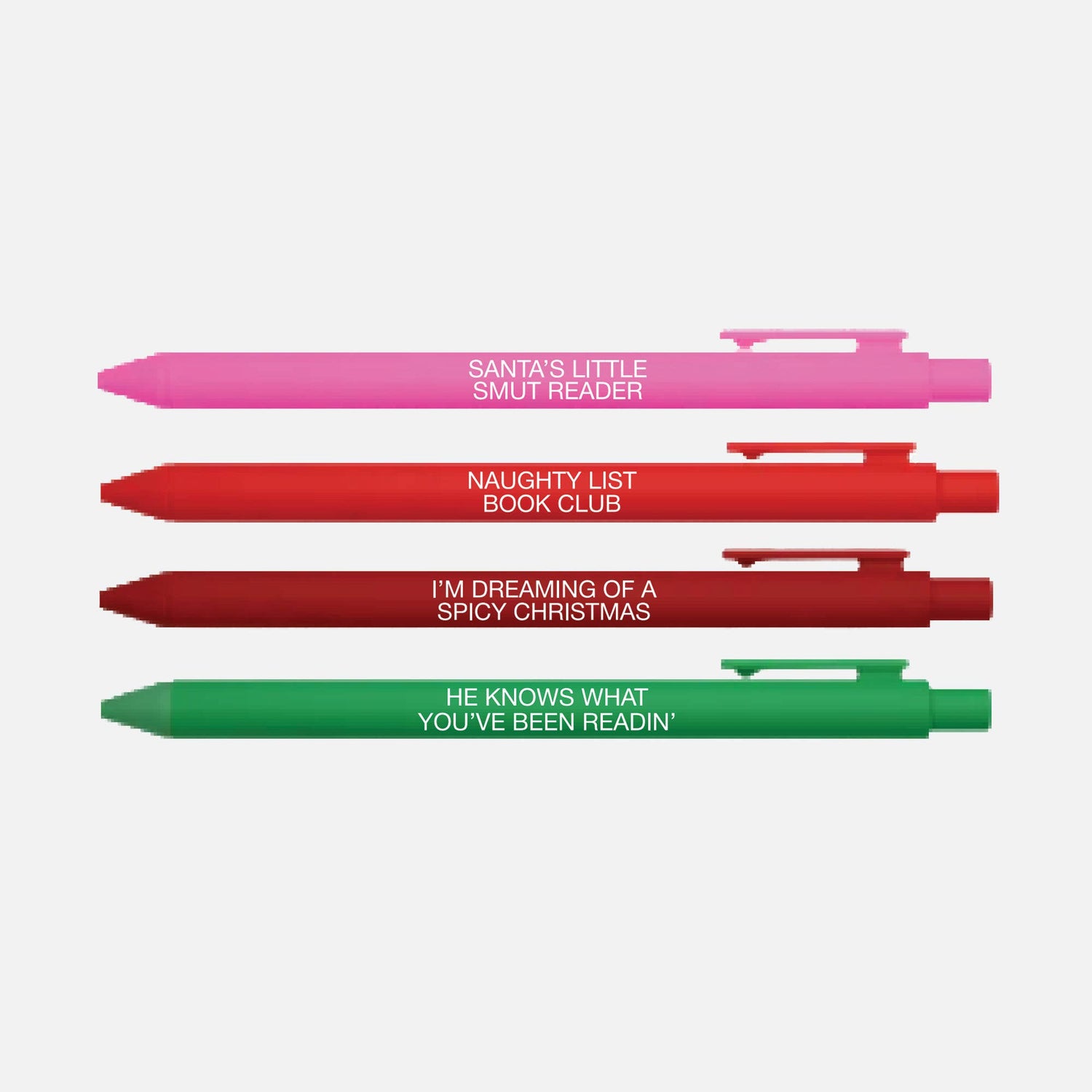 Santa knows exactly what you’ve been readin’ — and he’s not judging! This spicy bookish holiday pen set is the perfect cheeky gift for romance readers who keep the holidays extra hot. This 4-pack of smooth black ink click pens features delightfully naughty phrases: “Santa’s Little Smut Reader,” “Naughty List Book Club,” “I’m Dreaming of a Spicy Christmas,” and “He Knows What You’ve Been Readin’.”